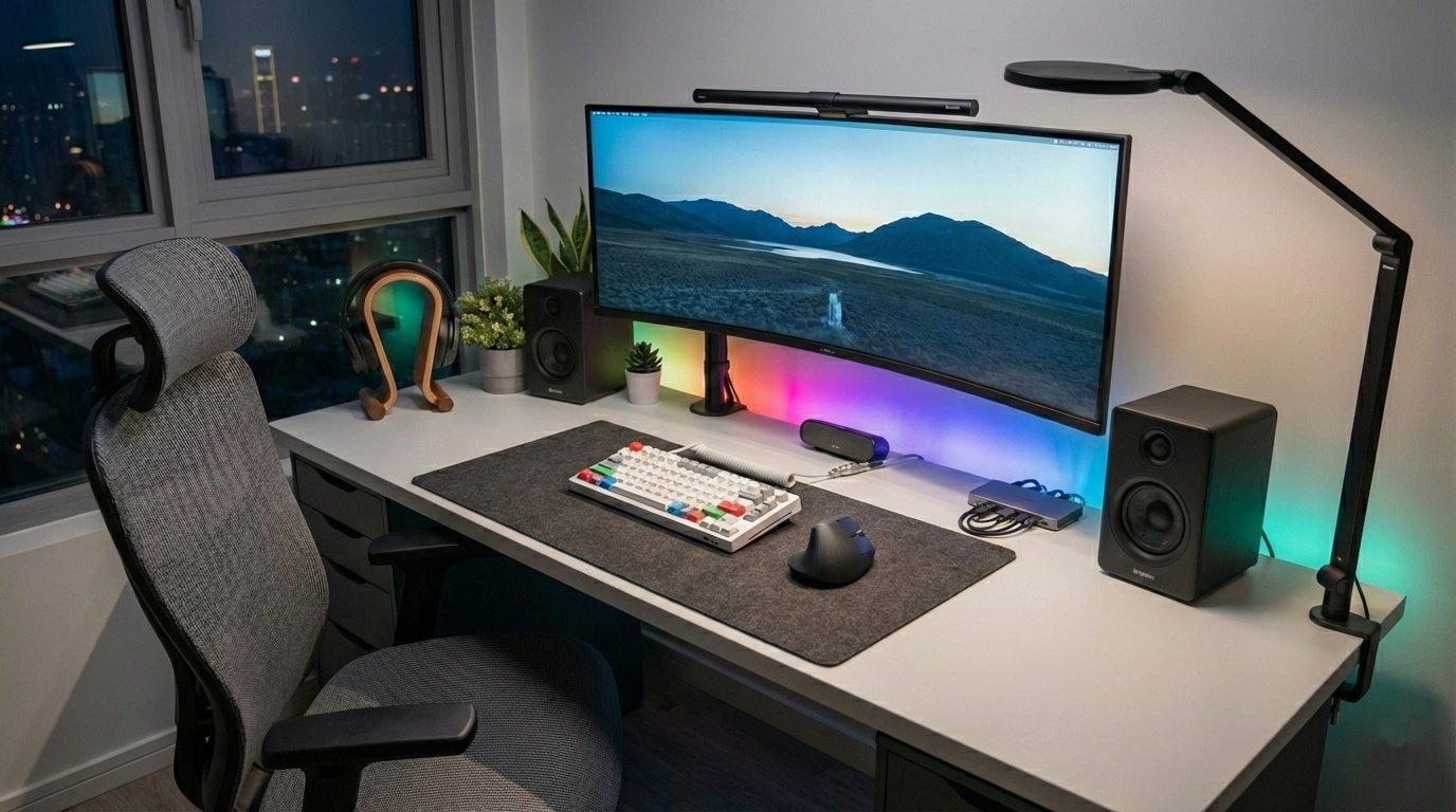 Combine ergonomia e estilo com nossa seleção premium. Da cadeira que protege sua coluna à iluminação que define o clima, monte o escritório que você merece