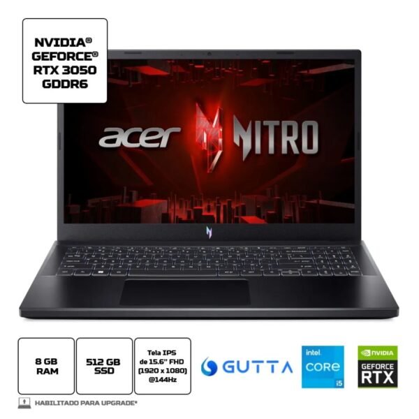 Notebook Gamer Acer Nitro V15 ANV15-51-57WS i5 13ªGen Linux Gutta 8GB 512GB SSD RTX3050 15.6′ FHD